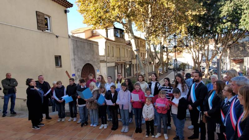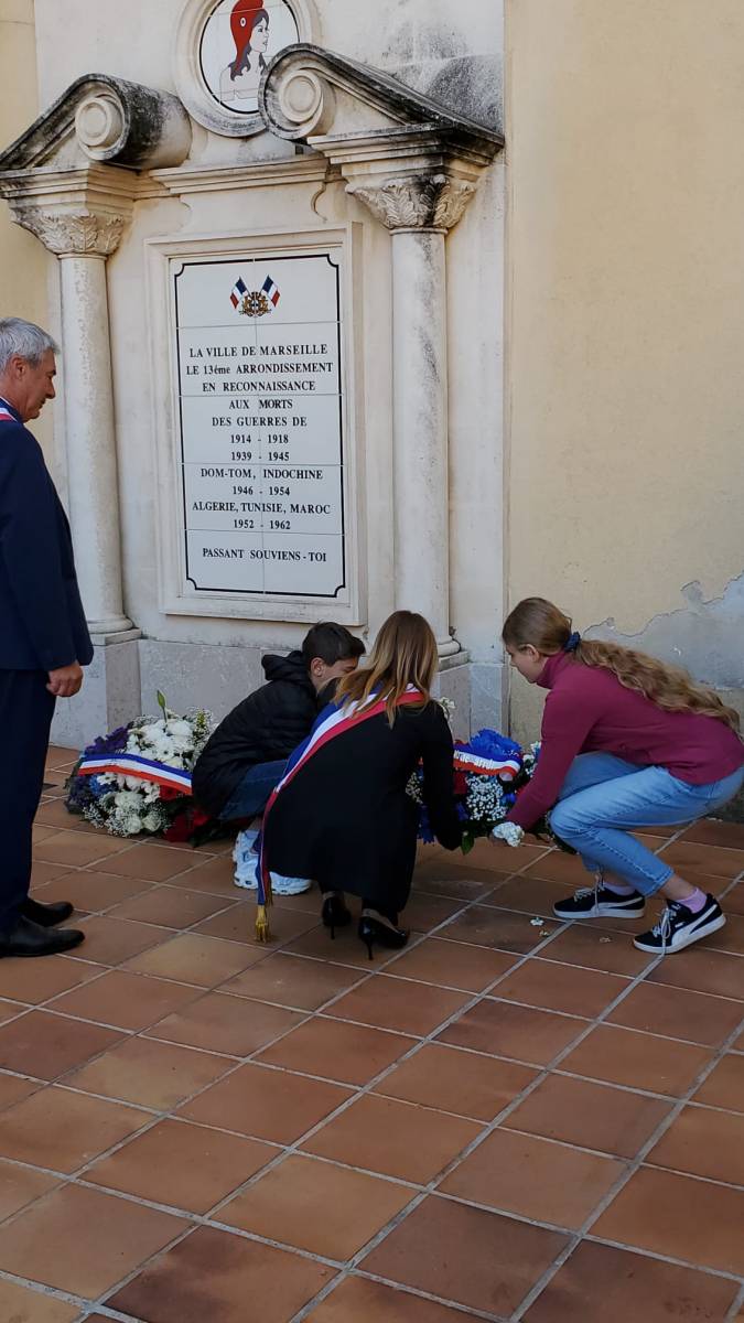 Les élèves de Sévigné de l'école du collège et du lycée accompagnés de leur professeur de musique et de Chorale , Sandra Spagnoli ont chanté la Marseillaise lors de la commémoration de l’armistice du 11 novembre en mémoire des combattants morts pour la France devant le monument aux morts à côté de l’église Saint Jérôme, Marseille 13013.
