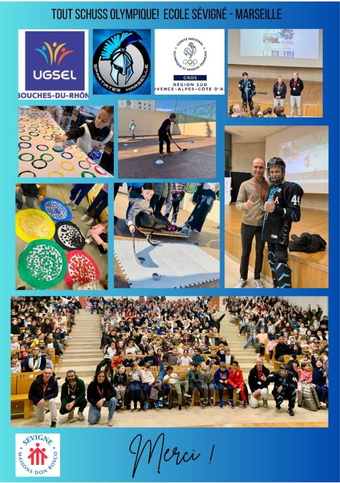 Ce vendredi 30 janvier, nous étions nombreux à partager ce temps fort de sport pour changer de regard sur le handicap: l'équipe de Para-hockey de Marseille, l'adjoint à l'inclusion au maire 13/14ème, le comité olympique et l'UGSEL.