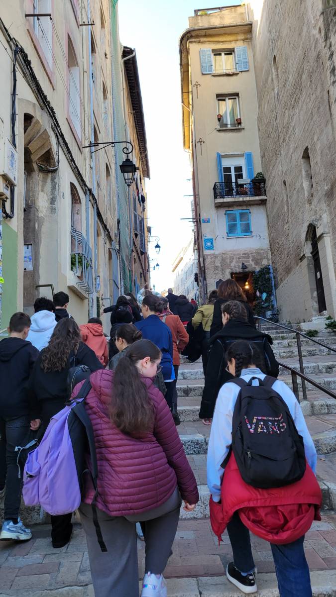 En cette après-midi du jeudi 12 décembre 2024, nos élèves de quatrième sont partis en métro visiter le vieux Marseille : vieux port, quartier du panier avec la célèbre et pittoresque montée des Accoules, la vieille Charité, l'Hotel Dieu, la cathédrale de la major ont été des arrêts incontournables de cette sortie ensoleillée .
